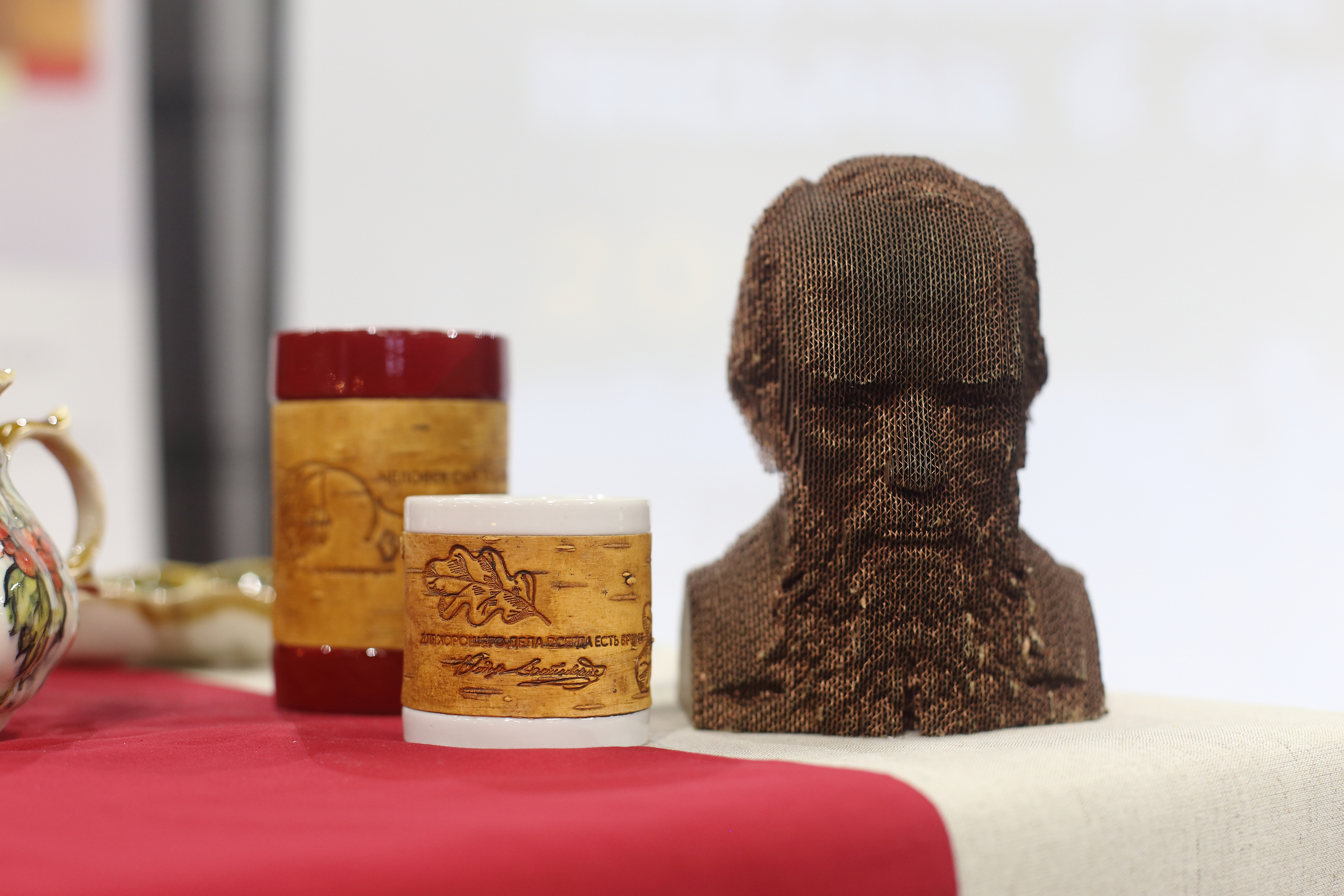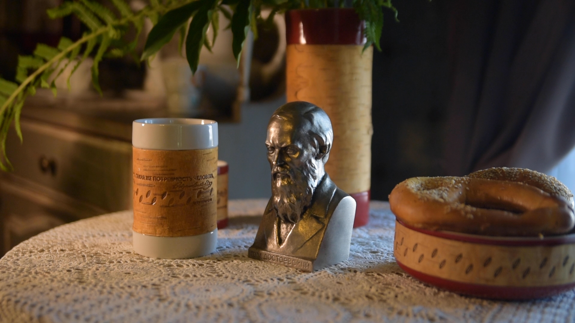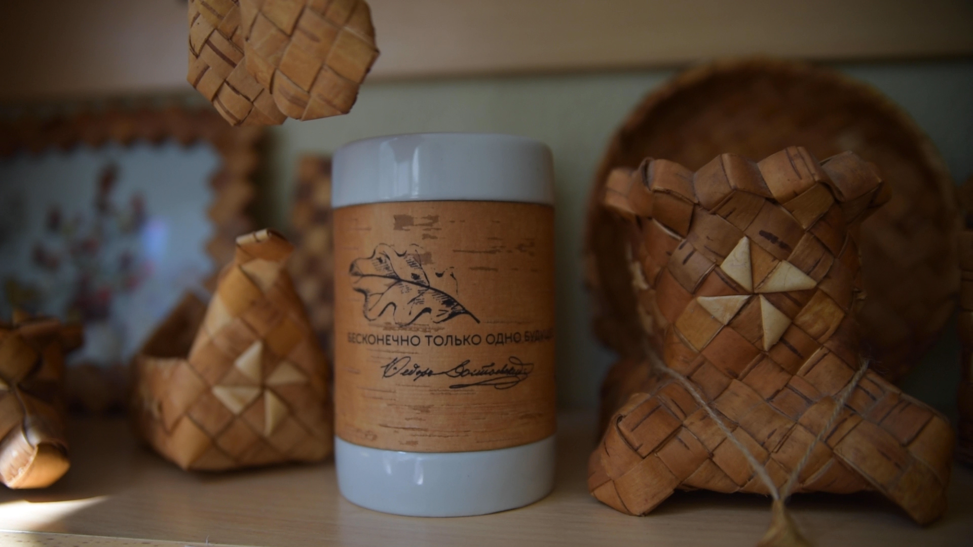 Коллекции фарфоровой посуды с берестой с цитатами из произведений и дневников Ф.М. Достоевского созданы в рамках проекта "Берестяные письма в будущее. XXI век. Великое русское слово великих русских писателей" при поддержке Президентского Фонда Культурных Инициатив. Подбор цитат - Новгородский музей-заповедник, Дом-музей Ф.М. Достоевского.