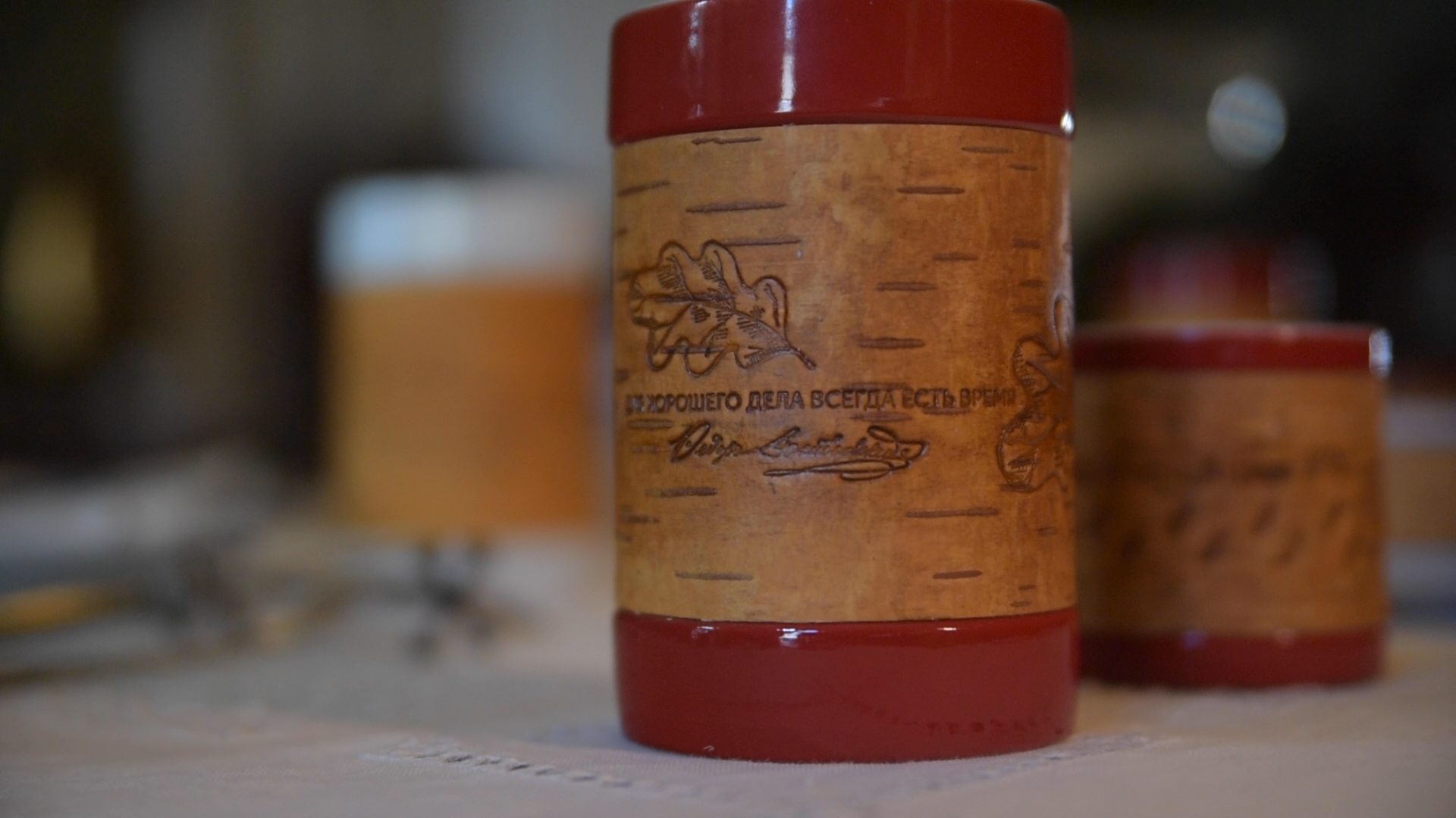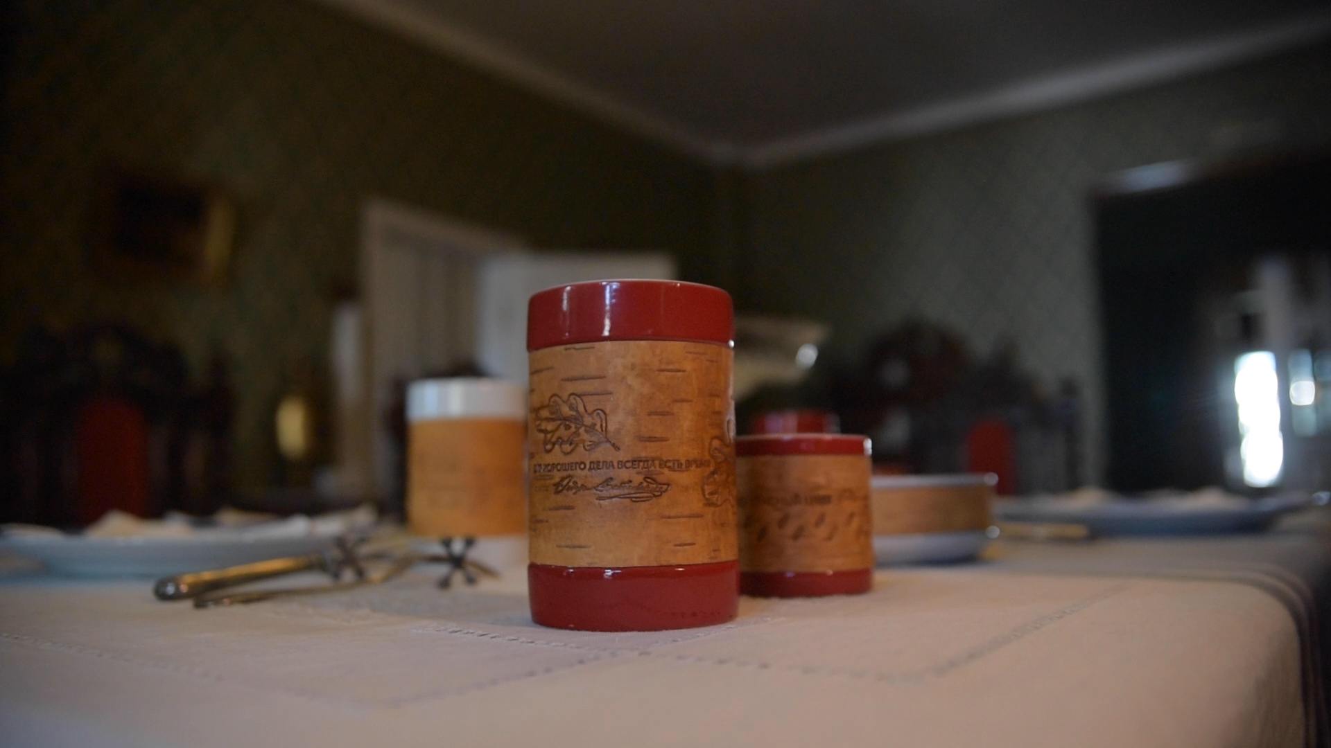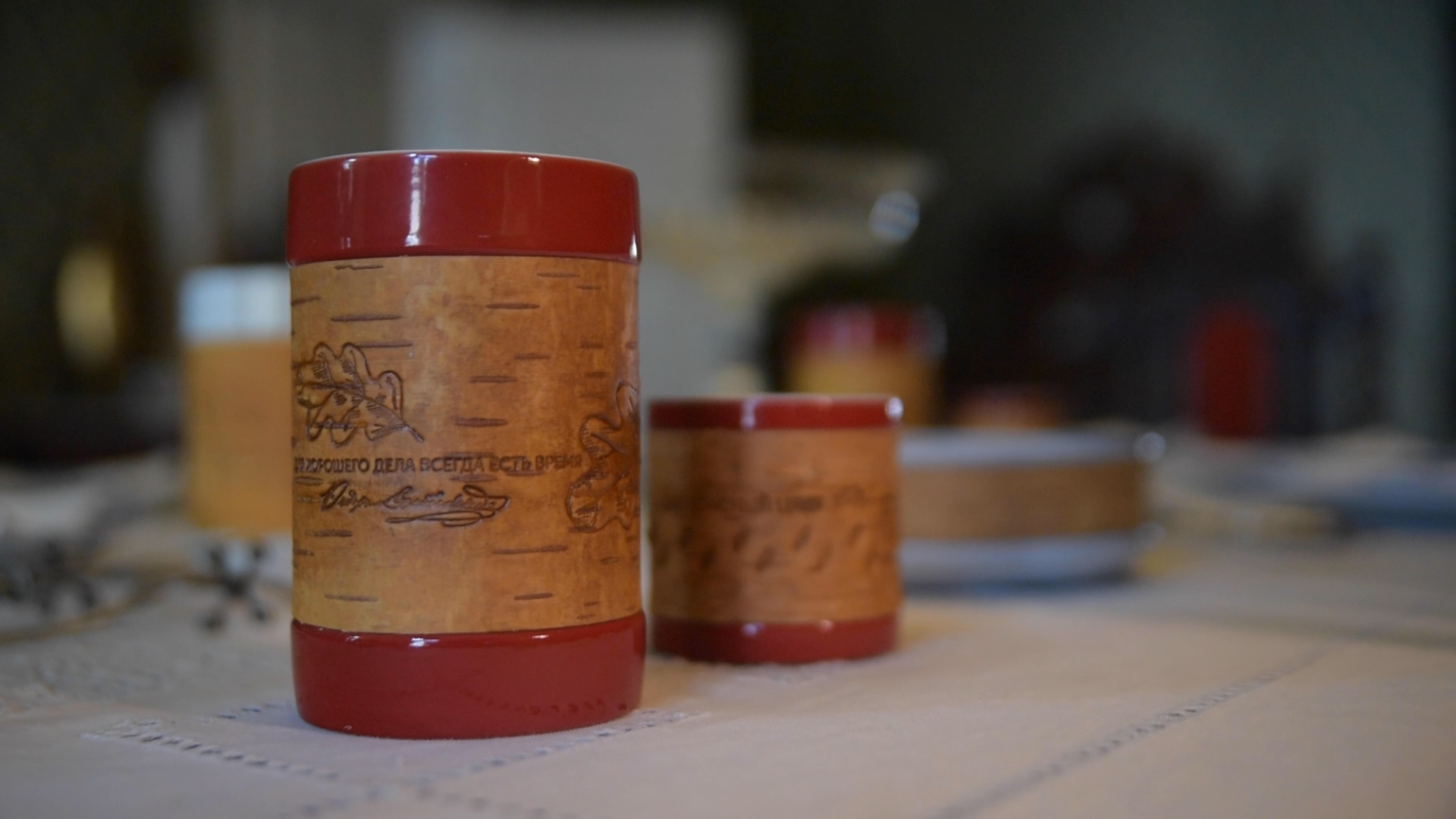 Коллекции фарфоровой посуды с берестой с цитатами из произведений и дневников Ф.М. Достоевского созданы в рамках проекта "Берестяные письма в будущее. XXI век. Великое русское слово великих русских писателей" при поддержке Президентского Фонда Культурных Инициатив. Подбор цитат - Новгородский музей-заповедник, Дом-музей Ф.М. Достоевского.