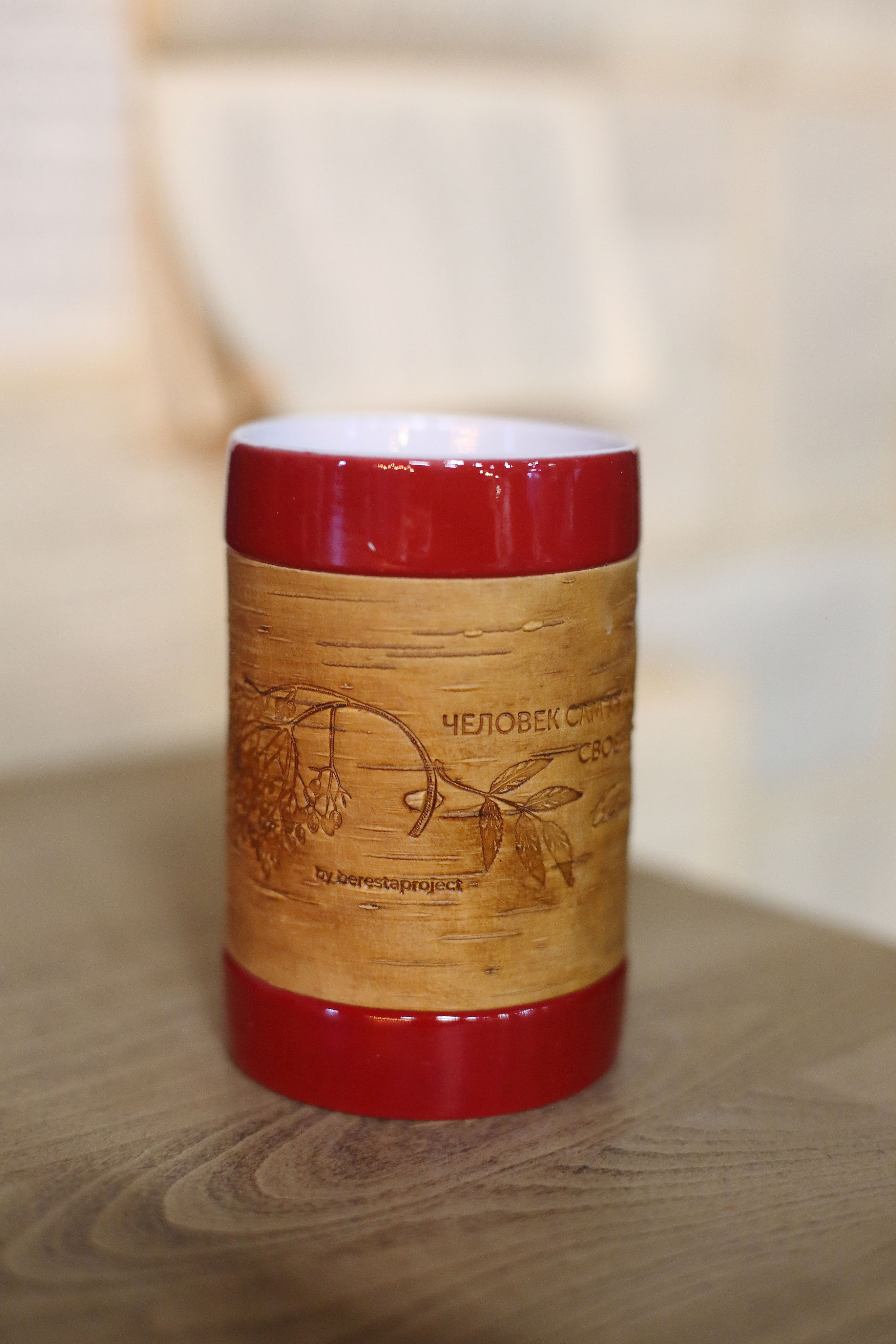 Kружка большая (без ручки) размером 12х8х9, объемом 420мл и весом 500г рекомендована для чаепития, и может использоваться как малая ваза для цветов или органайзер для ручек и карандашей, а также для иных целей в интерьере дома или офиса или загородного дома. Кружку можно держать горячей в руках, не боясь обжечься; мыть в воде, не снимая бересту и ставить в посудомоечную машину или микроволновку. Кружка упаковывается в картонную коробку, но для дальнего почтового отправления мы рекомендуем заказывать фирменный тубус, что гарантирует большую ее сохранность.