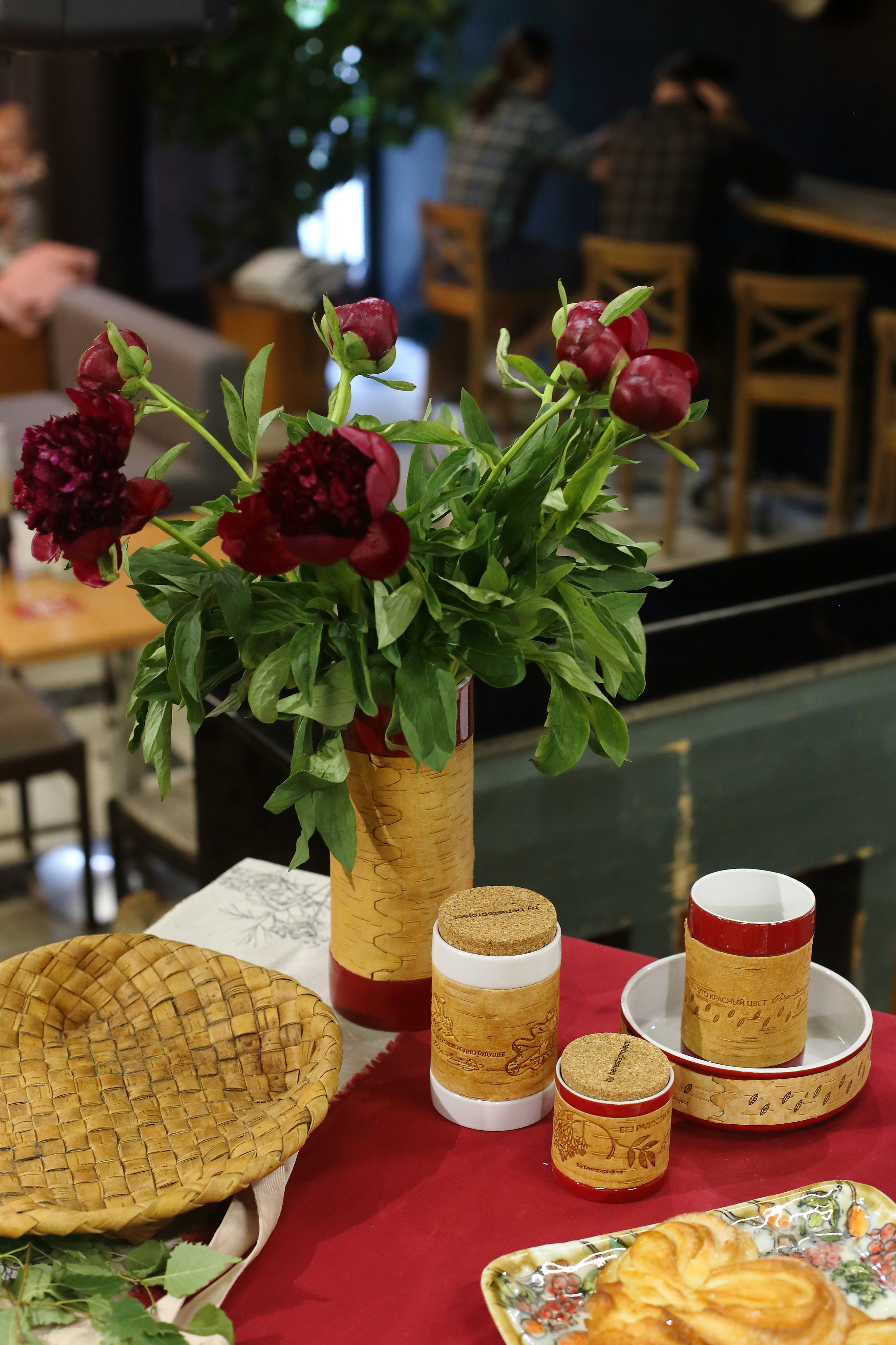 Фарфоровая посуда изготовлена на Дулевском фарфоровом заводе, а береста обрабатывалась на берестяном производстве в Шимском районе Новгородской области. Береста - это природный термо- и гидроизолятор. Поэтому посуду можно брать в руки, не боясь обжечься, а также ставить в посудомоечную печь и СВЧ.