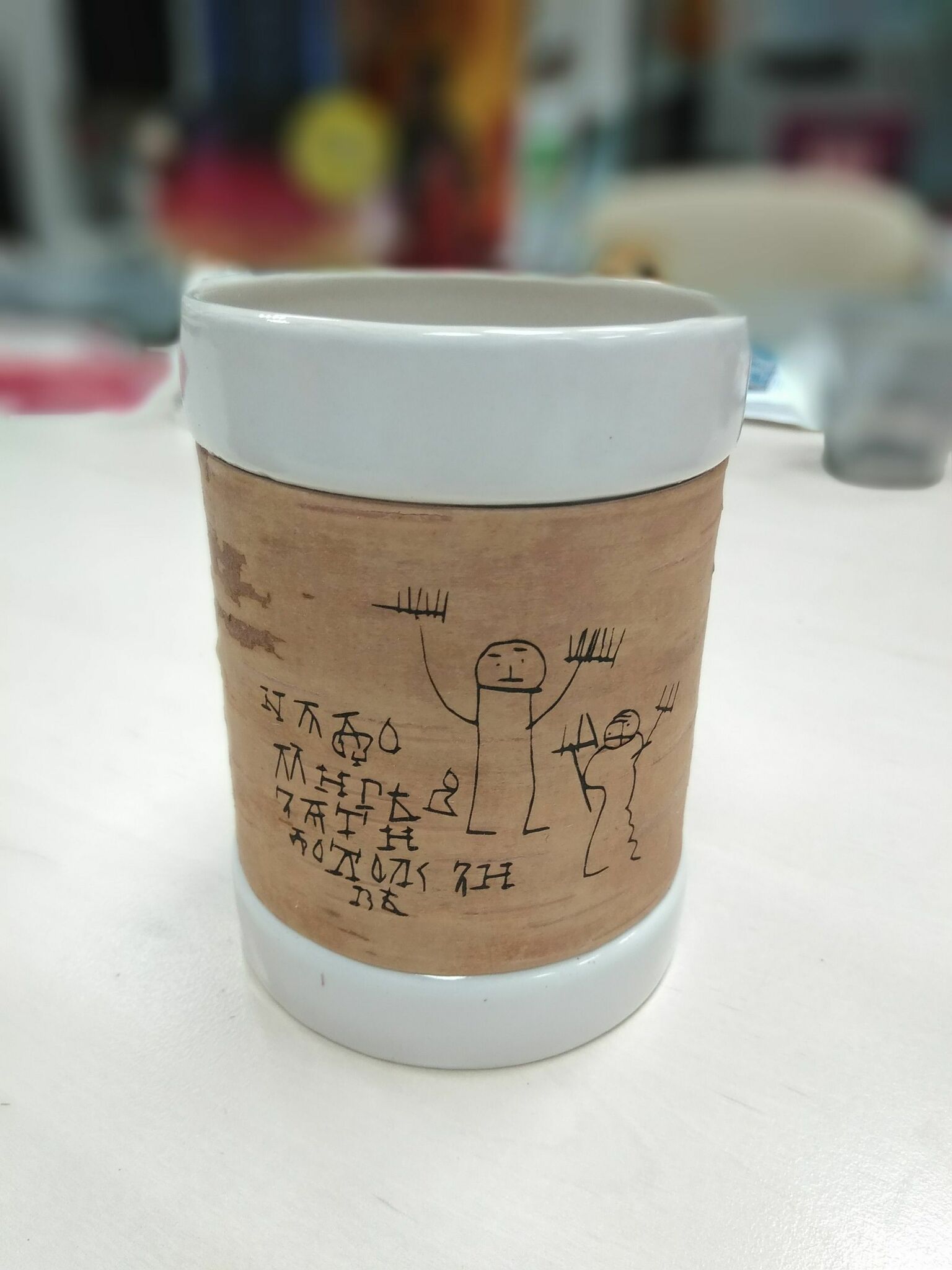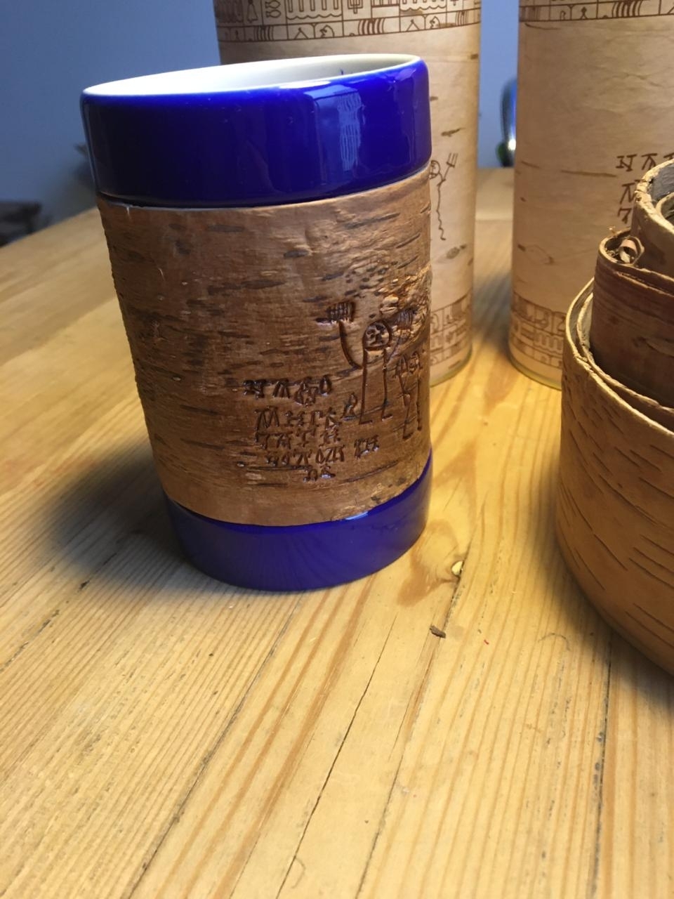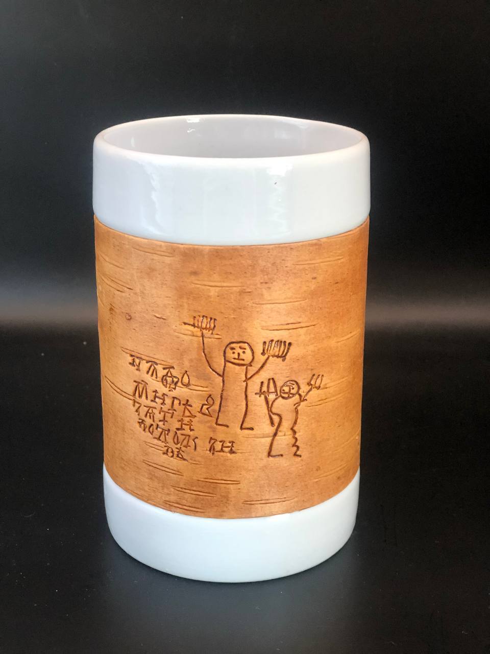 Kружка большая (без ручки) размером 12х8х9, объемом 420мл и весом 500г рекомендована для чаепития, и может использоваться как малая ваза для цветов или органайзер для ручек и карандашей, а также для иных целей в интерьере дома или офиса или загородного дома. Кружку можно держать горячей в руках, не боясь обжечься; мыть в воде, не снимая бересту и ставить в посудомоечную машину или микроволновку. Кружка упаковывается в картонную коробку, но для дальнего почтового отправления мы рекомендуем заказывать фирменный тубус, что гарантирует большую ее сохранность.