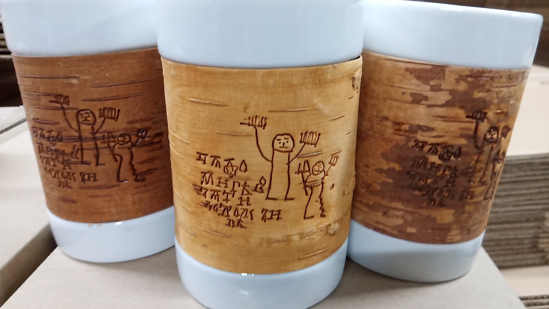 Коллекция Онфим отсылает к Новгородским берестяным грамотам и истории Великого Новгорода. Рисунки мальчика Онфима (Анфимий) относятся к XIIIв. Изображение нанесено с помощью тиснения, что обеспечивает его устойчивость к мытью и внешнему воздействию. Эта коллекция посвящена Новгородской области, родине берестяных грамот и на бересте вы найдете копию известных рисунков мальчика Онфима.