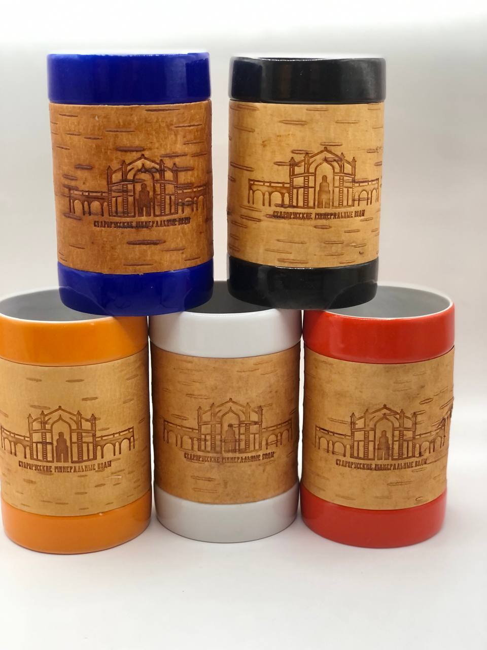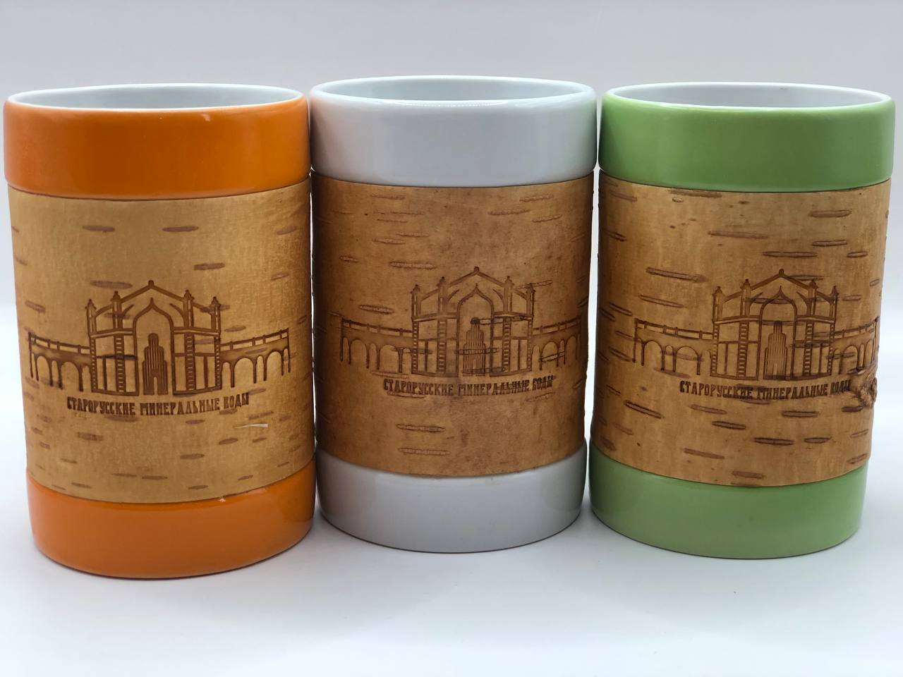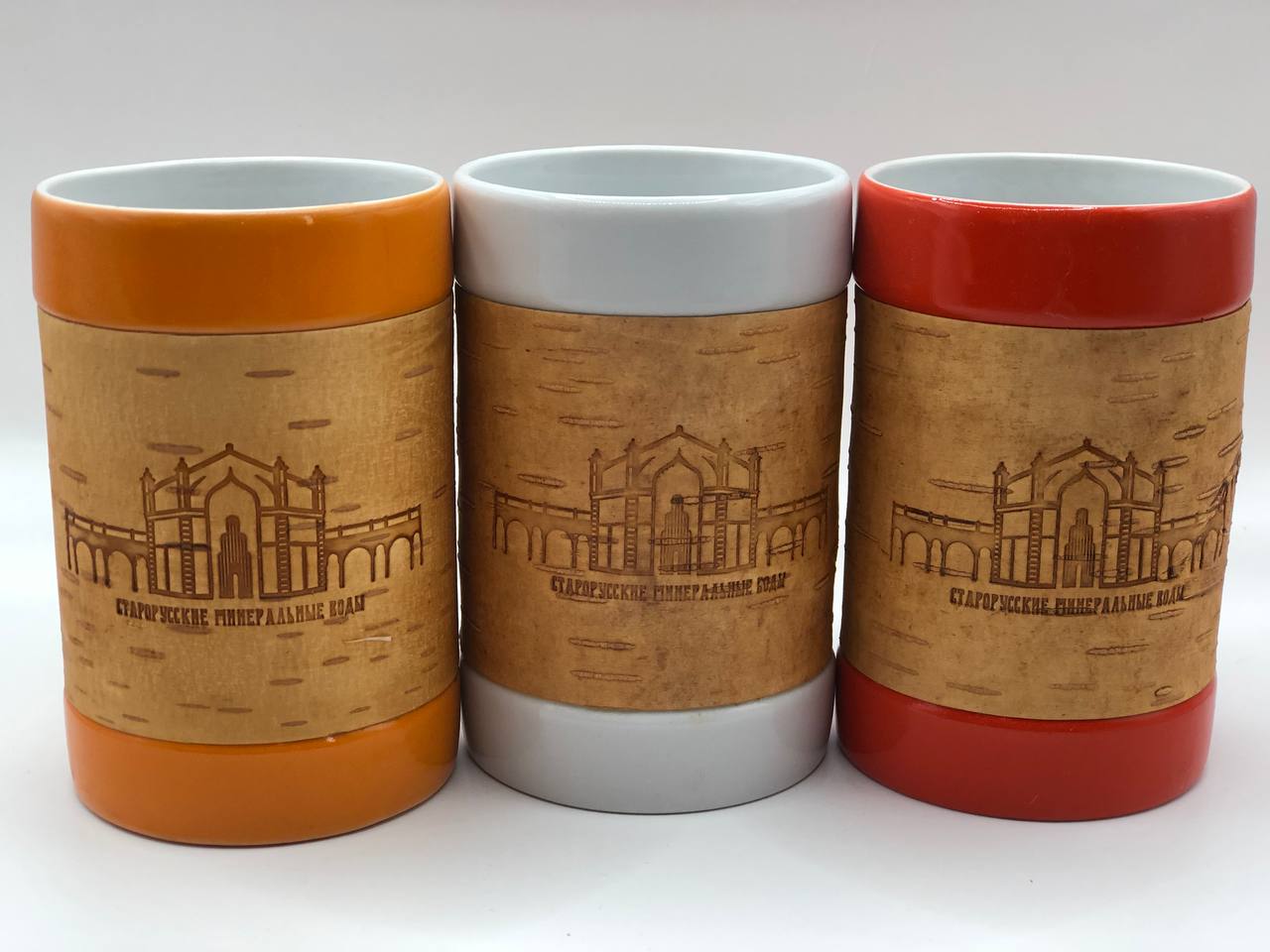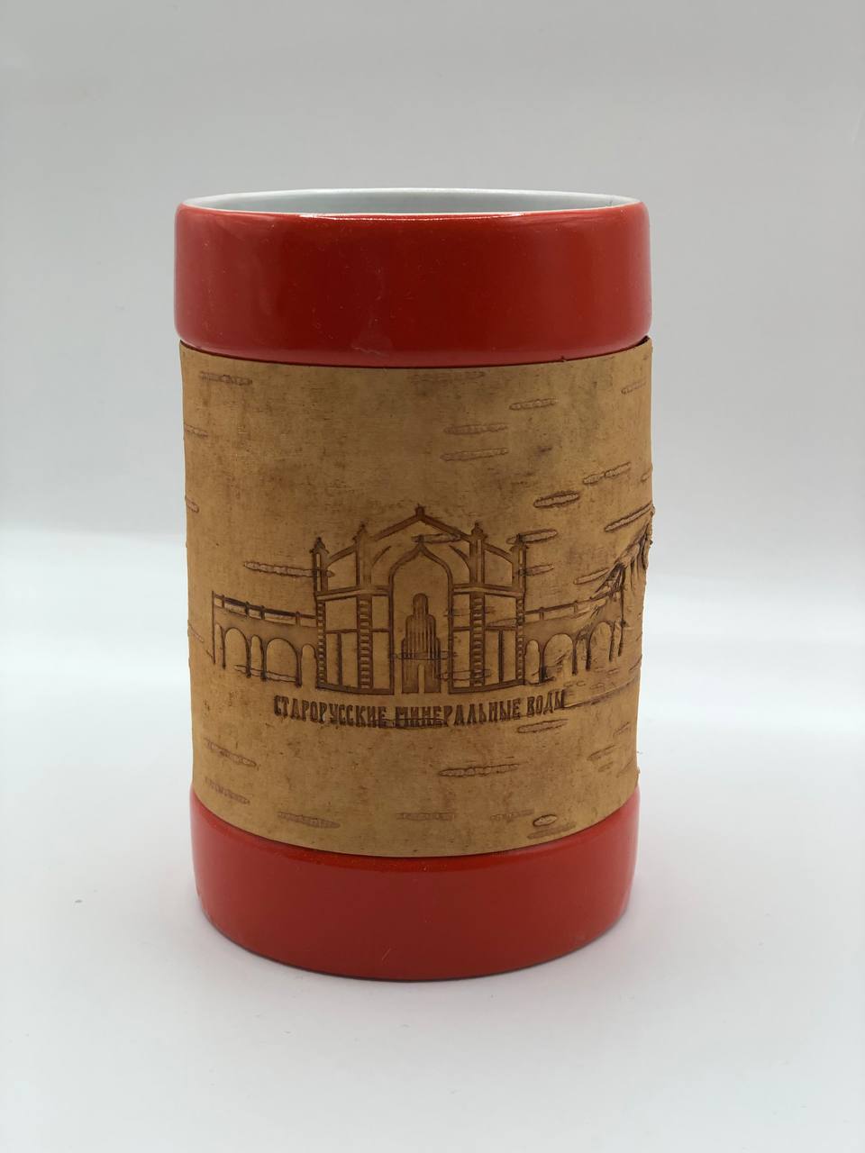 Дизайнерская фарфоровая кружка-стакан большая, обернутая берестой. Коллекция "Старая Русса"