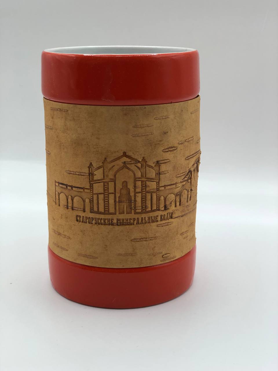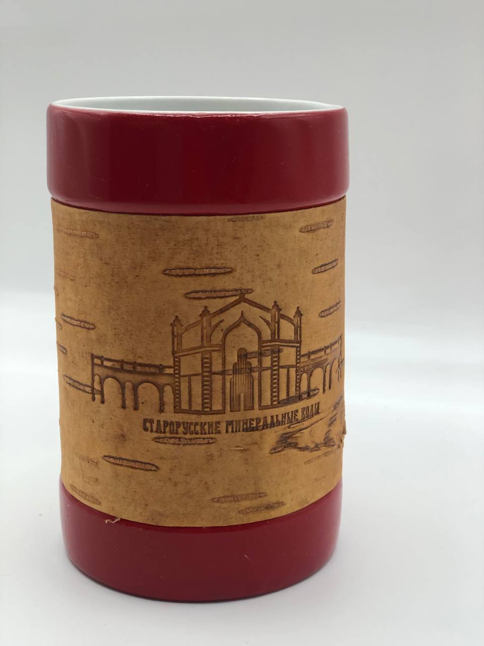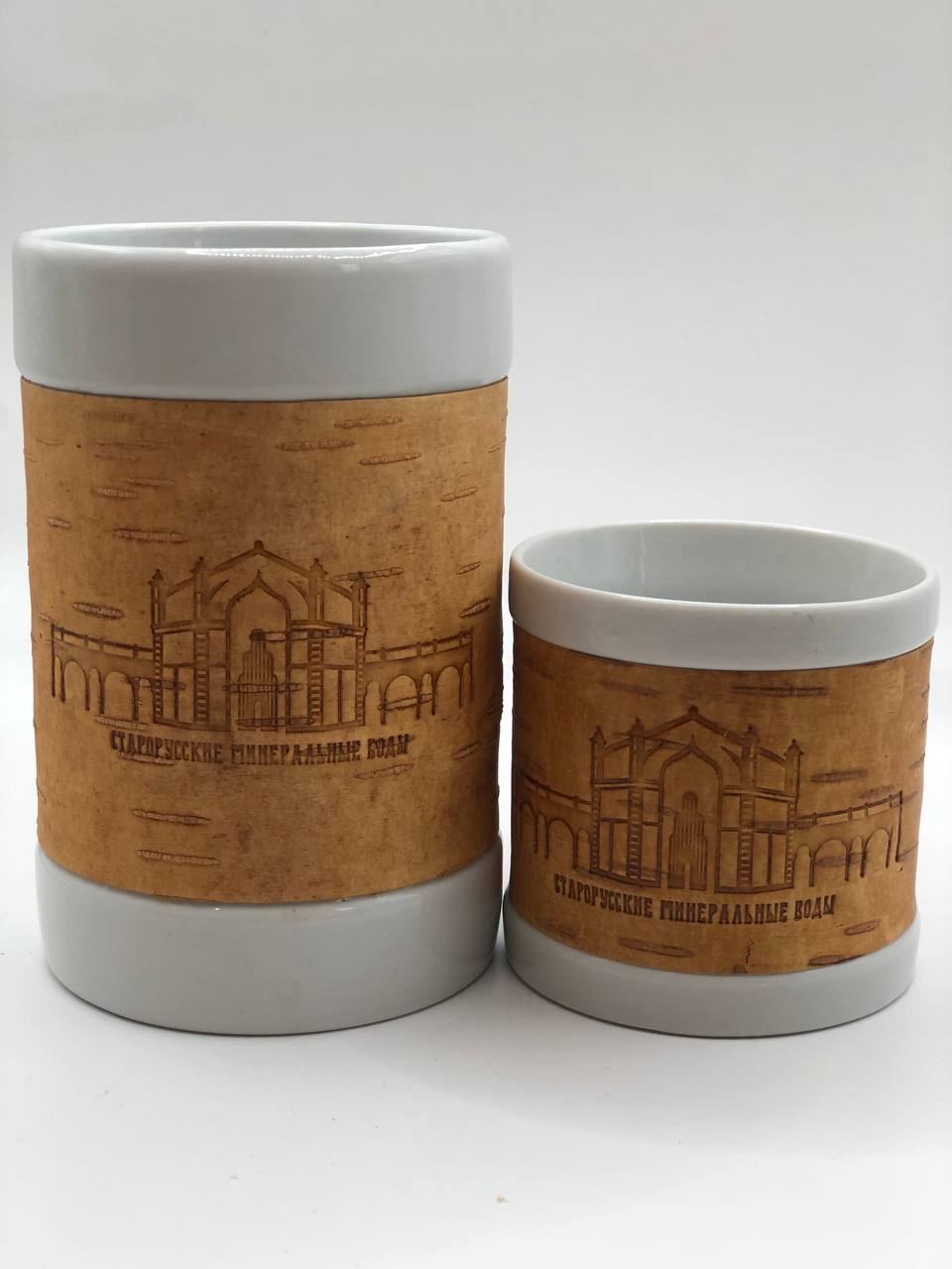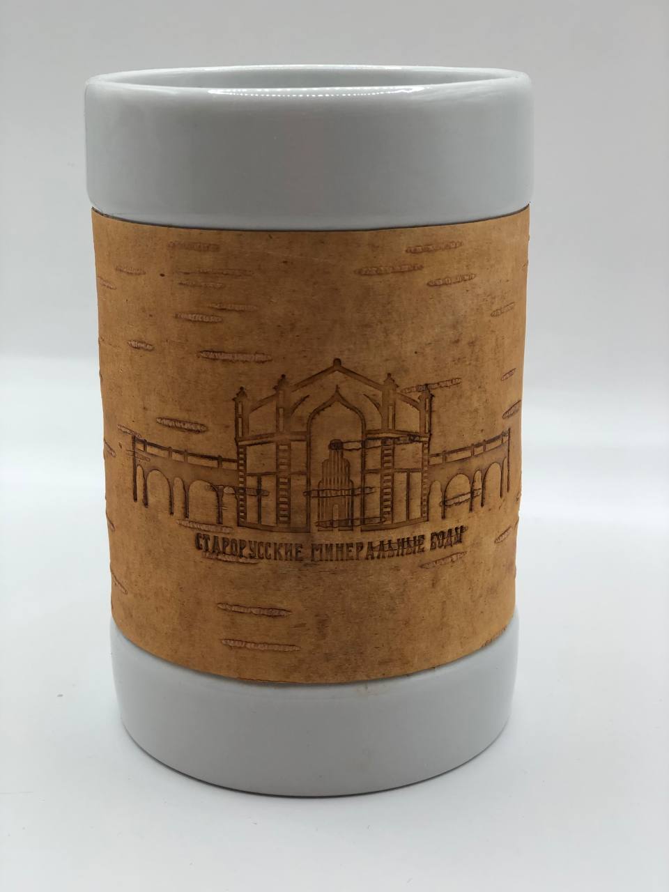 Кружка большая фарфоровая без ручки с берестой. Коллекция "Старая Русса"