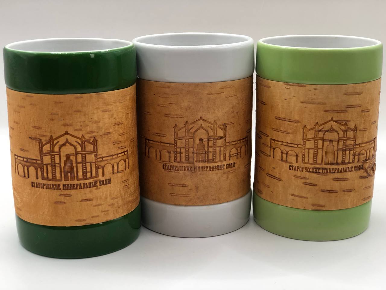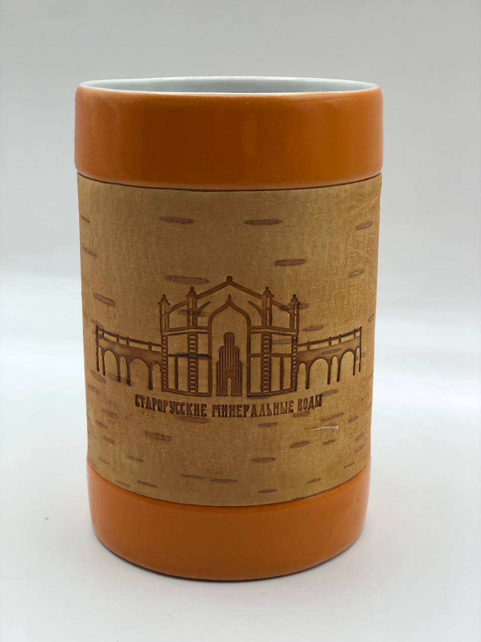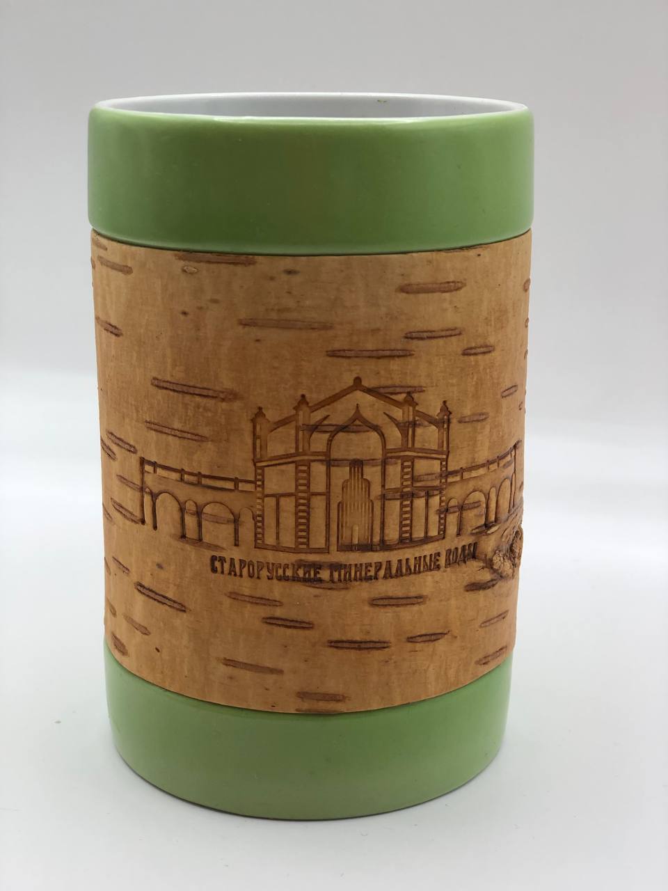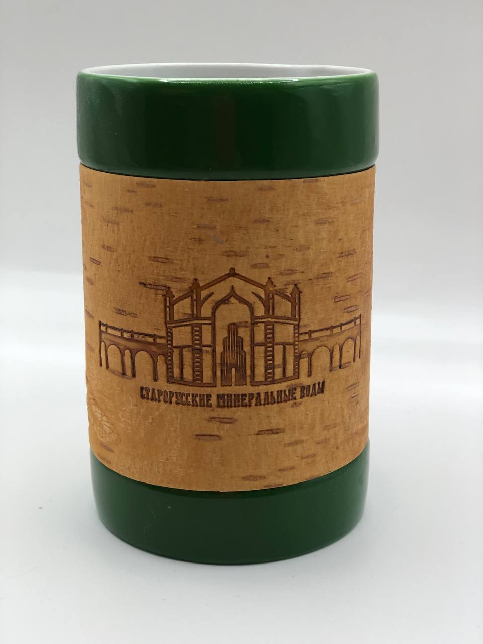Кружка большая фарфоровая без ручки с берестой. Коллекция "Старая Русса"