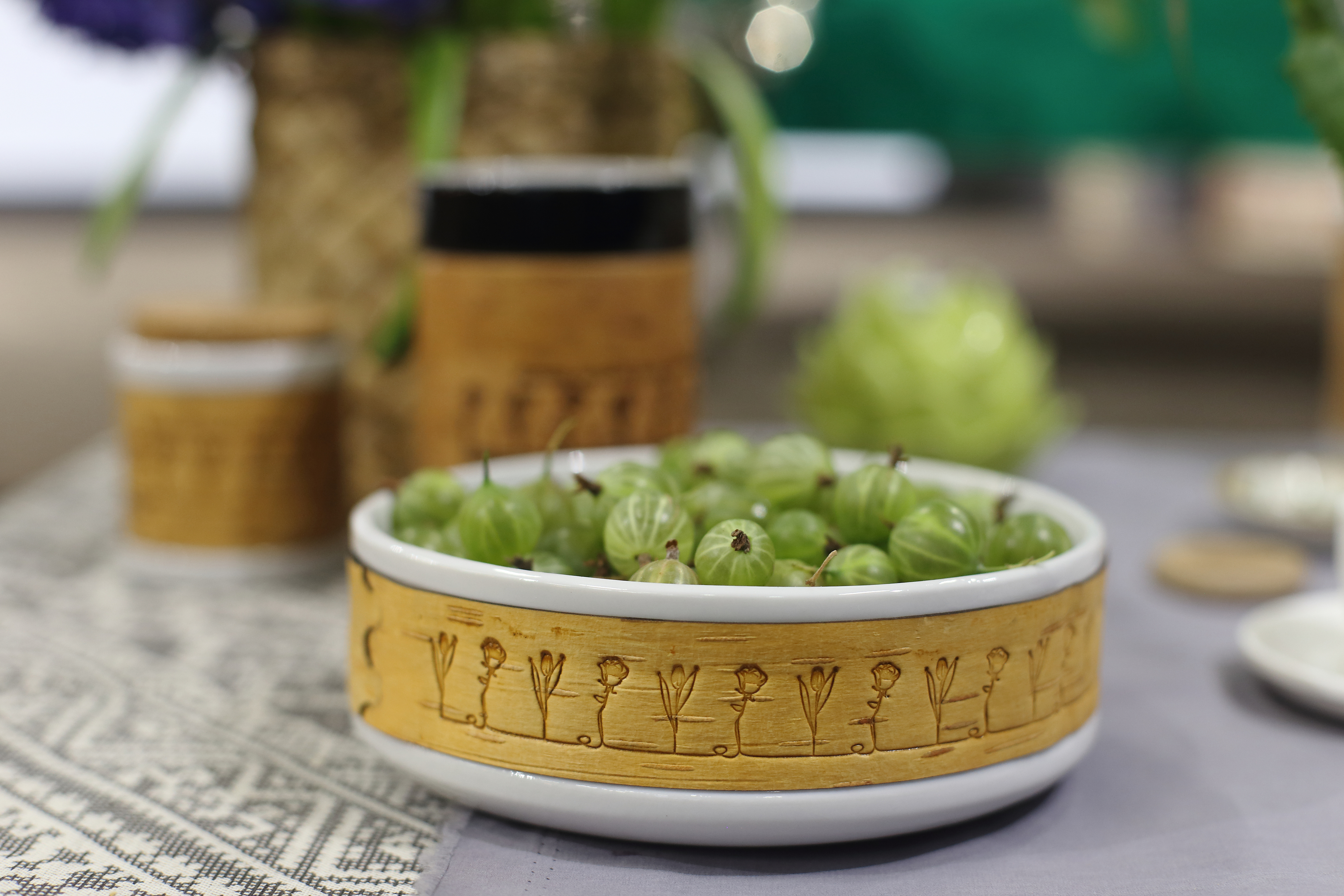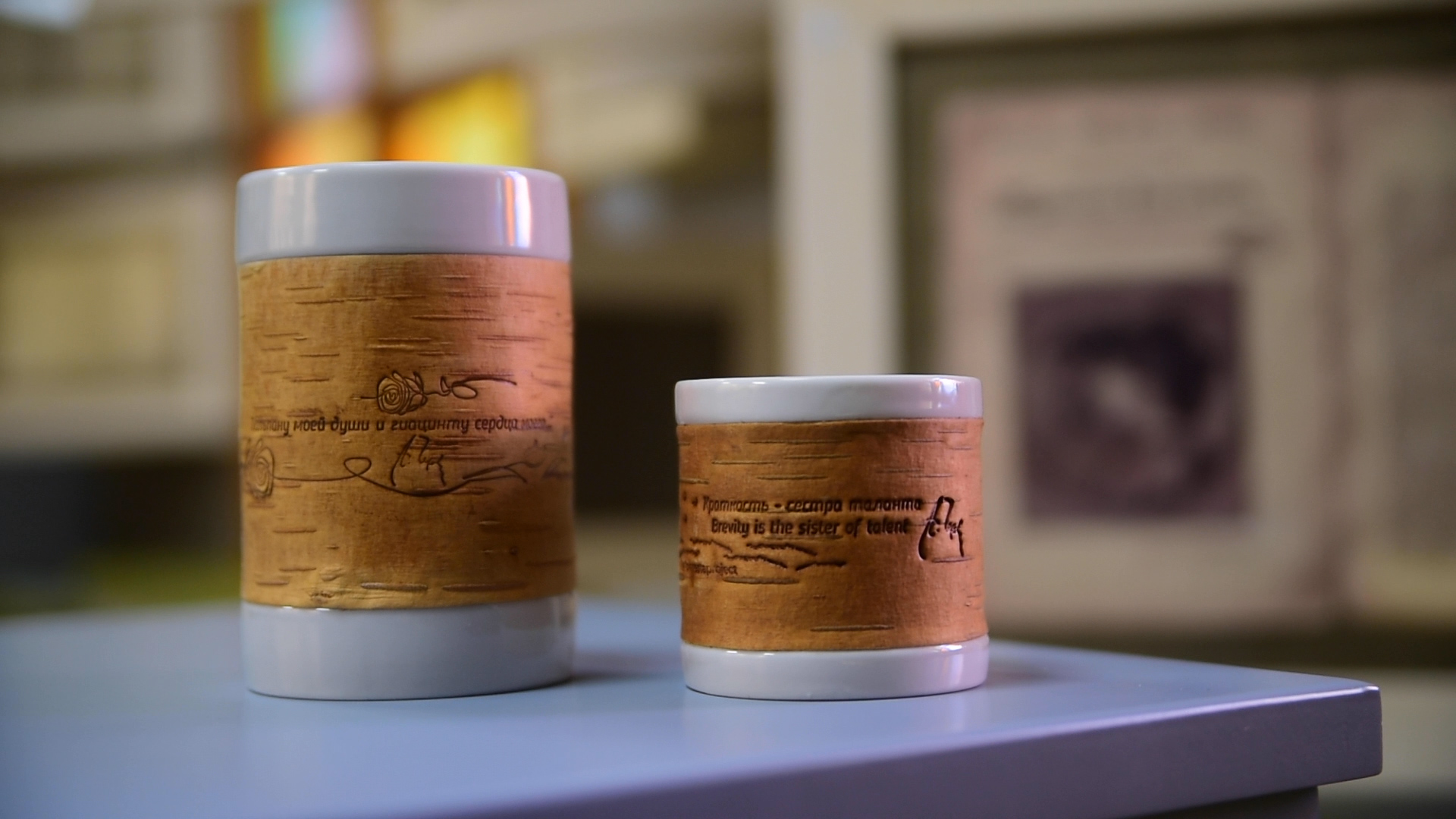 В русской истории хорошо известны примеры писания заметок, расписок, договоров, писем на бересте, а в традиции русского фарфора - поиск росписи, гармонирующей с формой изделий. Именно поэтому на бересте мы решили увековечить наиболее актуальные в XXI веке цитаты великих русских писателей, интегрировав изображения, связанные с их творчеством.