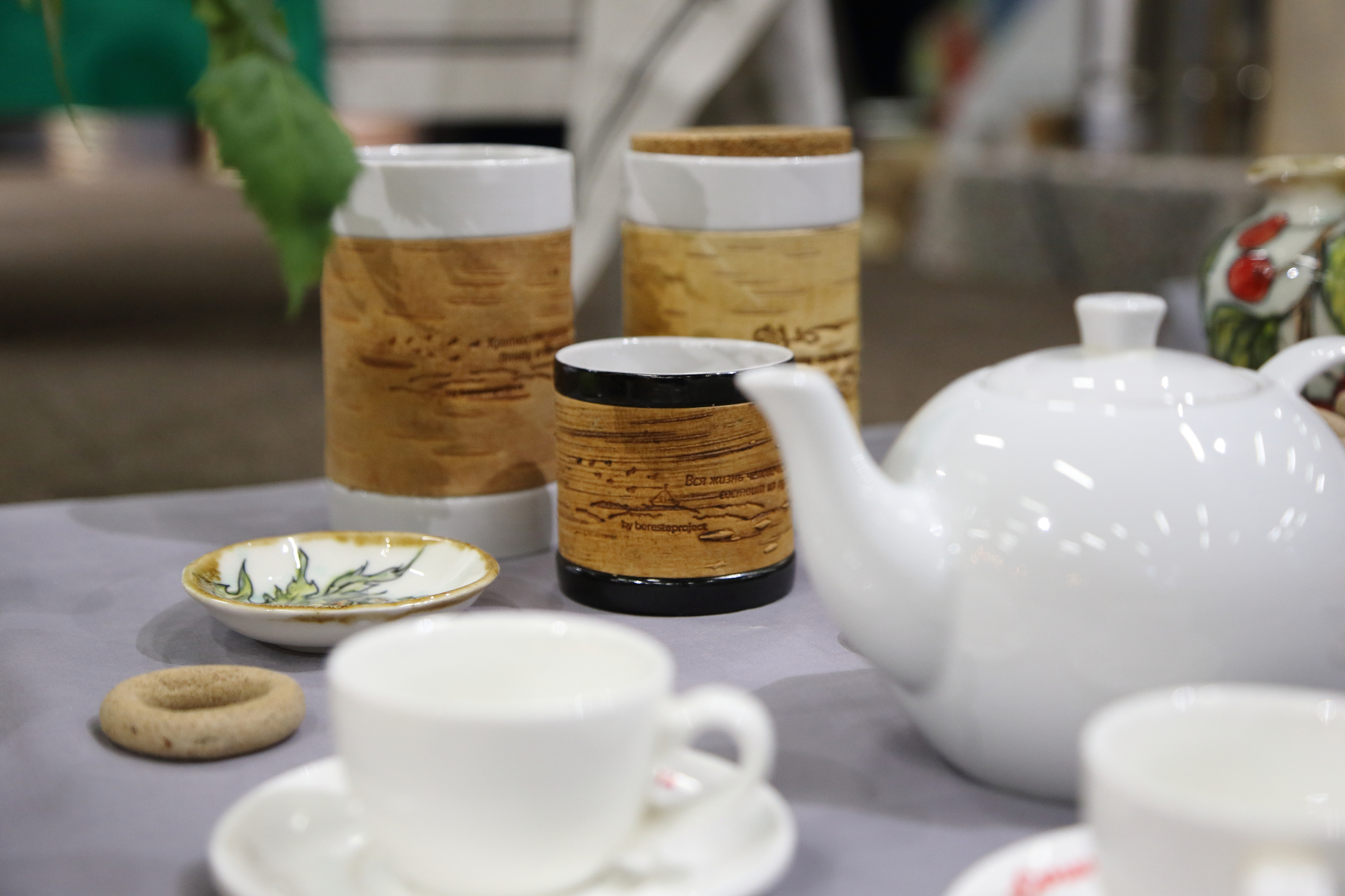 Коллекции фарфоровой посуды с берестой с цитатами из писем и произведений А.П. Чехова созданы в рамках проекта "Берестяные письма в будущее. XXI век. Великое русское слово великих русских писателей" при поддержке Президентского Фонда Культурных Инициатив.