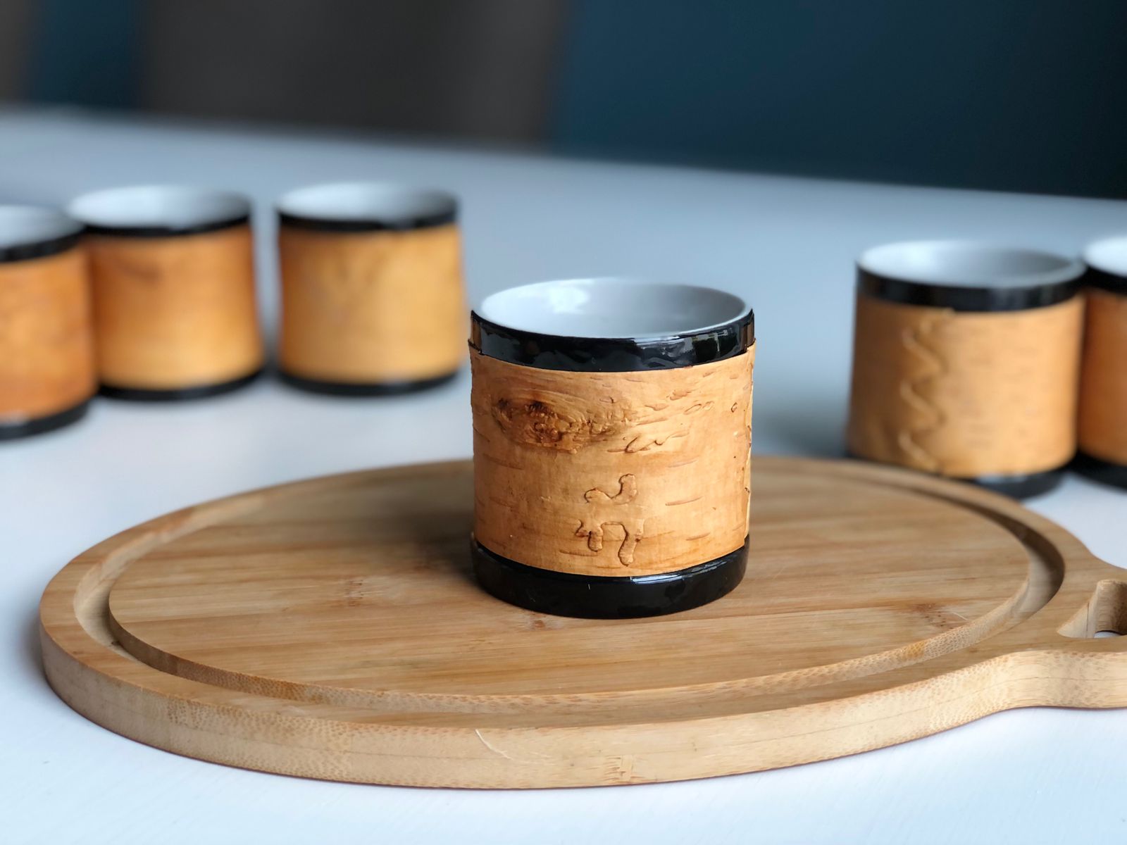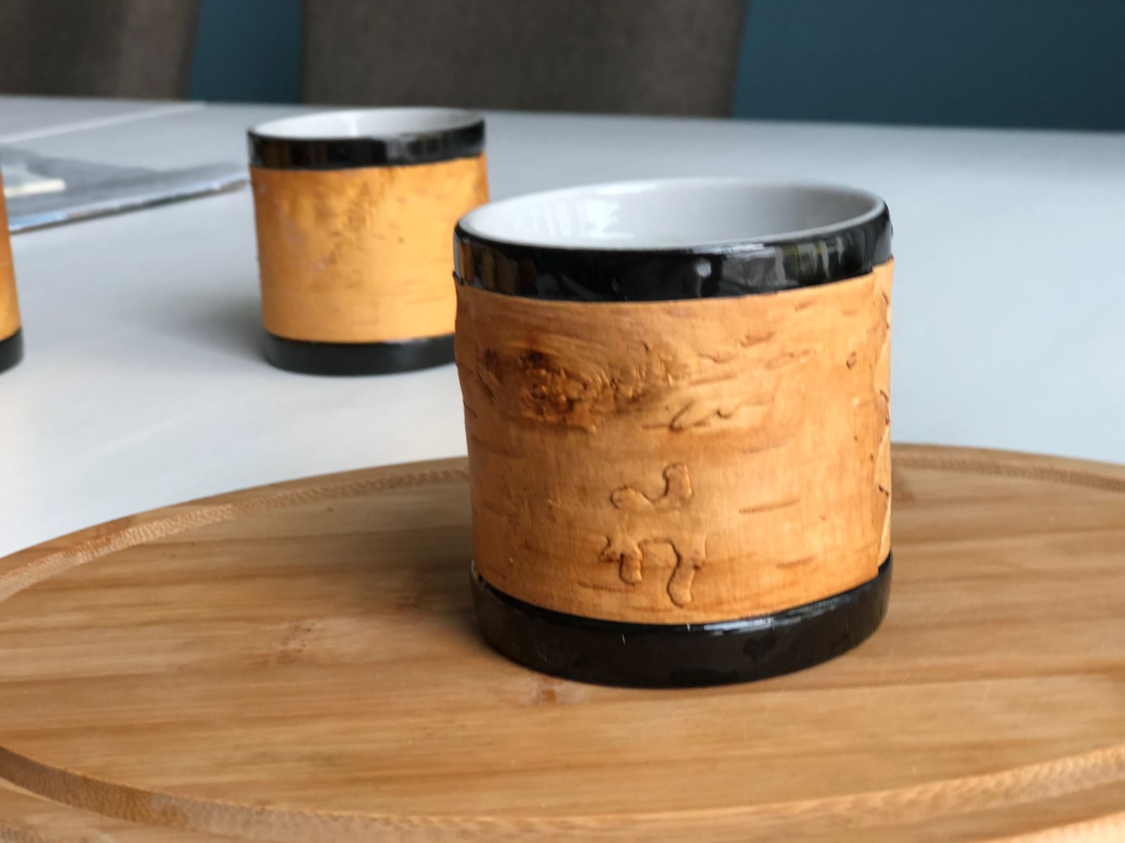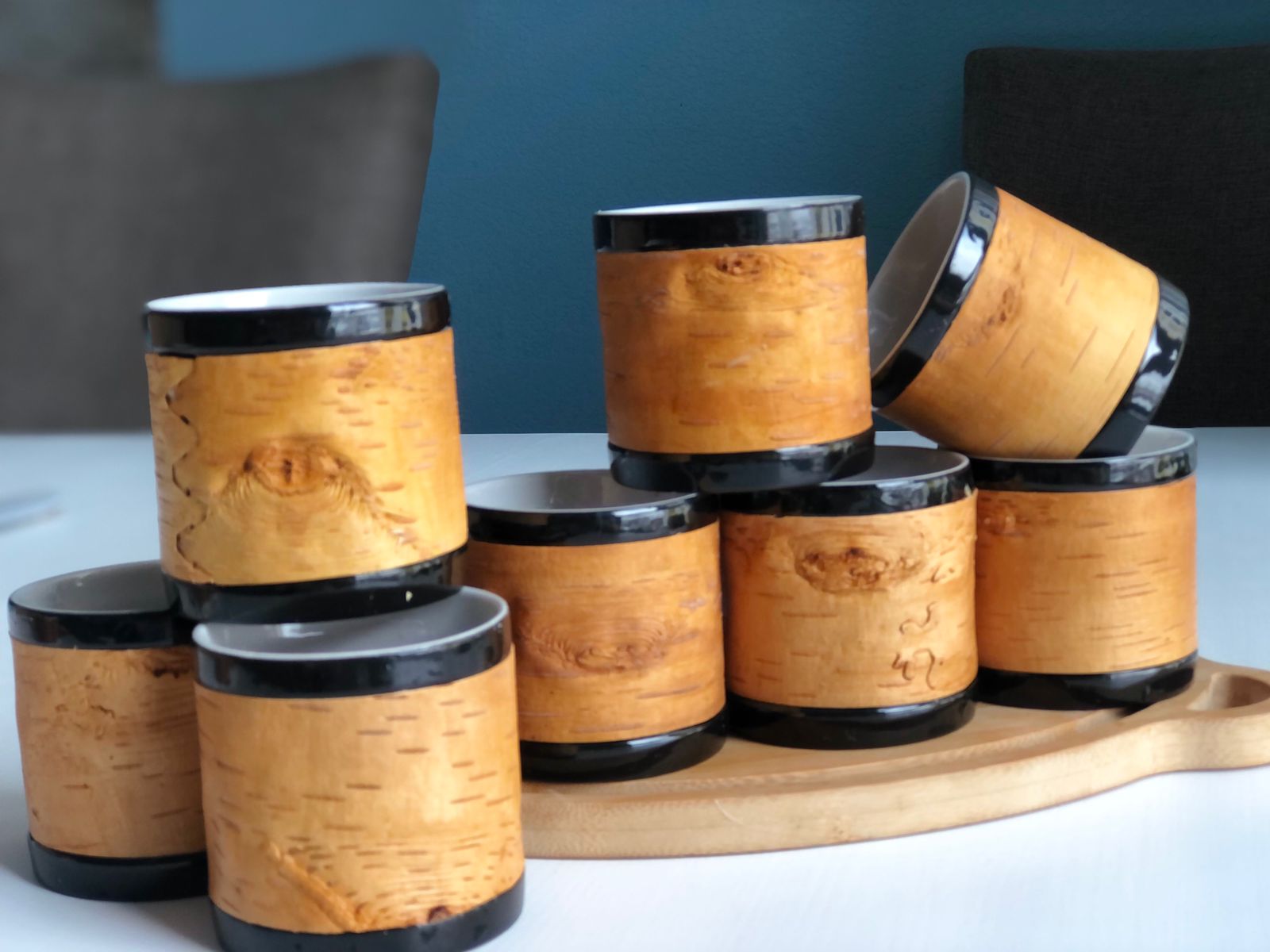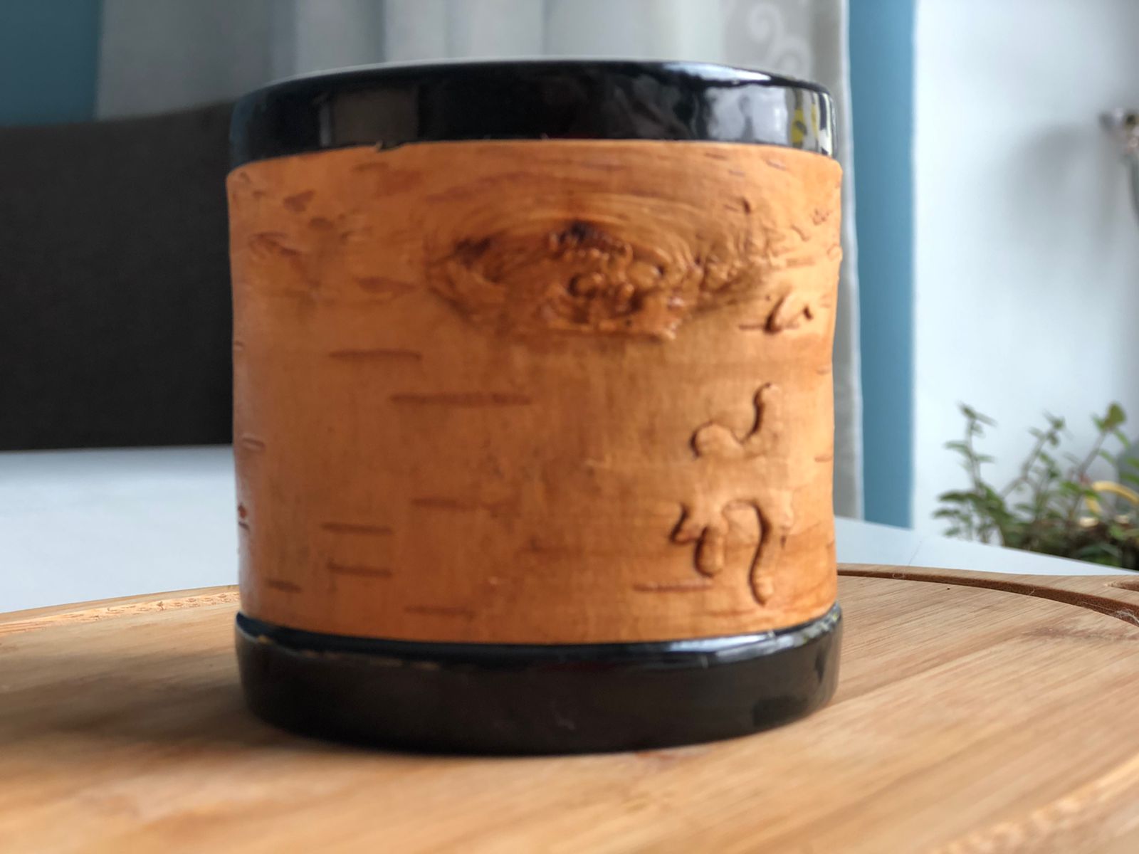 Kружка малая (без ручки) размером 7х7х7, объемом 190мл и весом 200г рекомендуется для кофе, для использования детьми и всеми желающими. Кружку можно держать горячей в руках, не боясь обжечься; мыть в воде, не снимая бересту и ставить в посудомоечную машину или микроволновку. Береста - природный термоизолятор. Кружка упаковывается в картонную коробку, но для дальнего почтового отправления мы рекомендуем заказывать фирменный тубус, что обеспечивает большую сохранность нашей продукции.