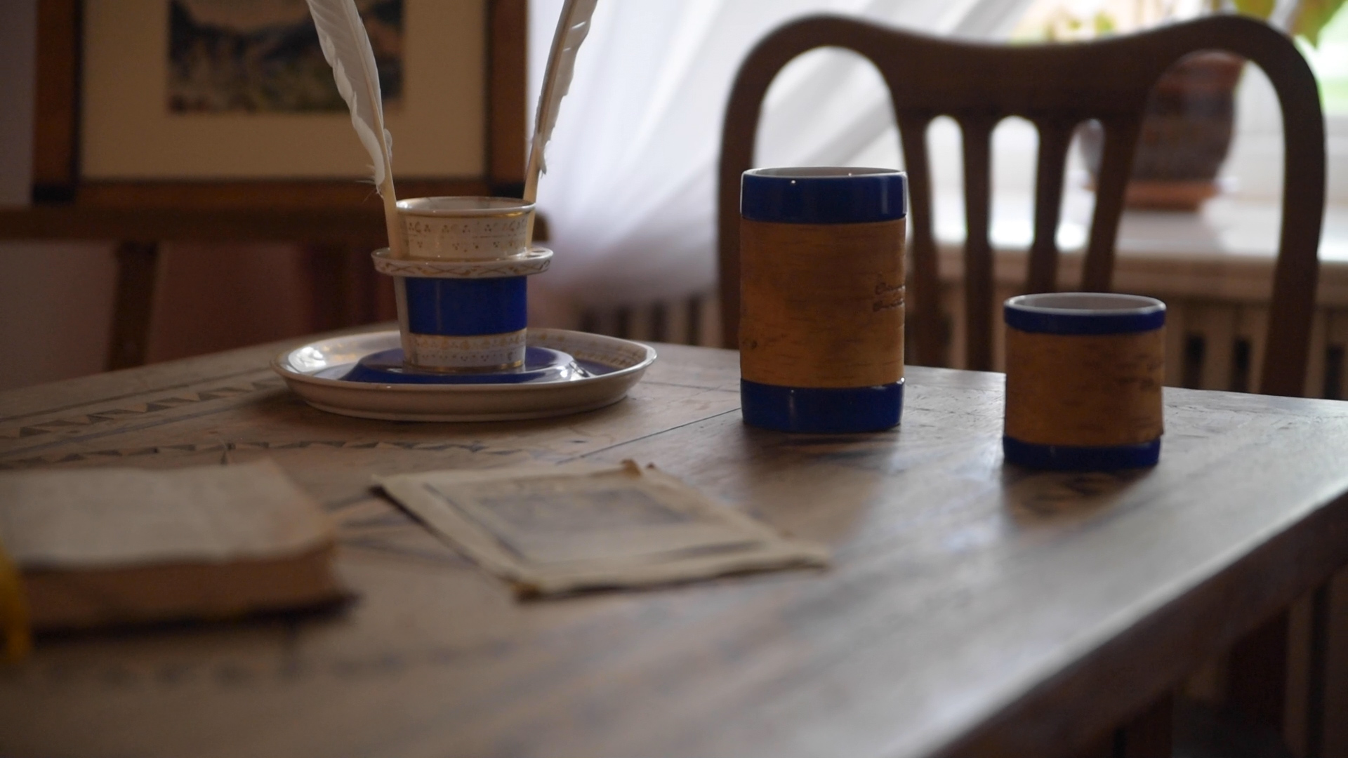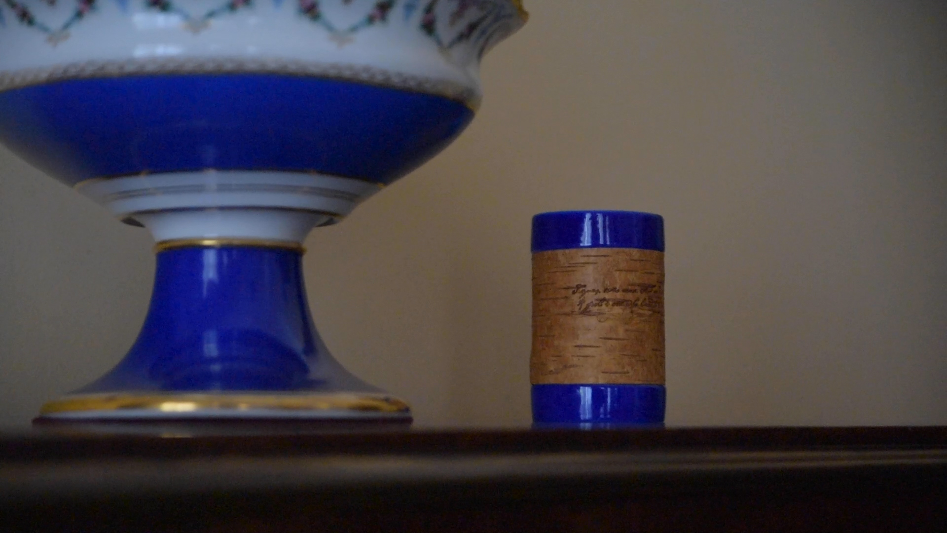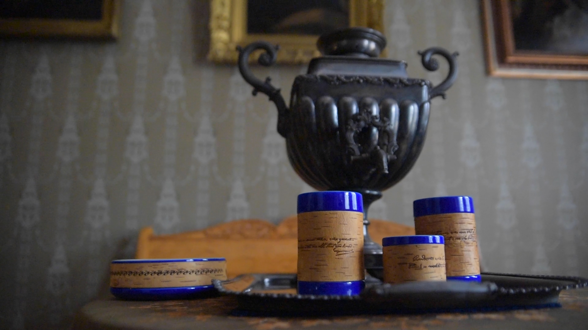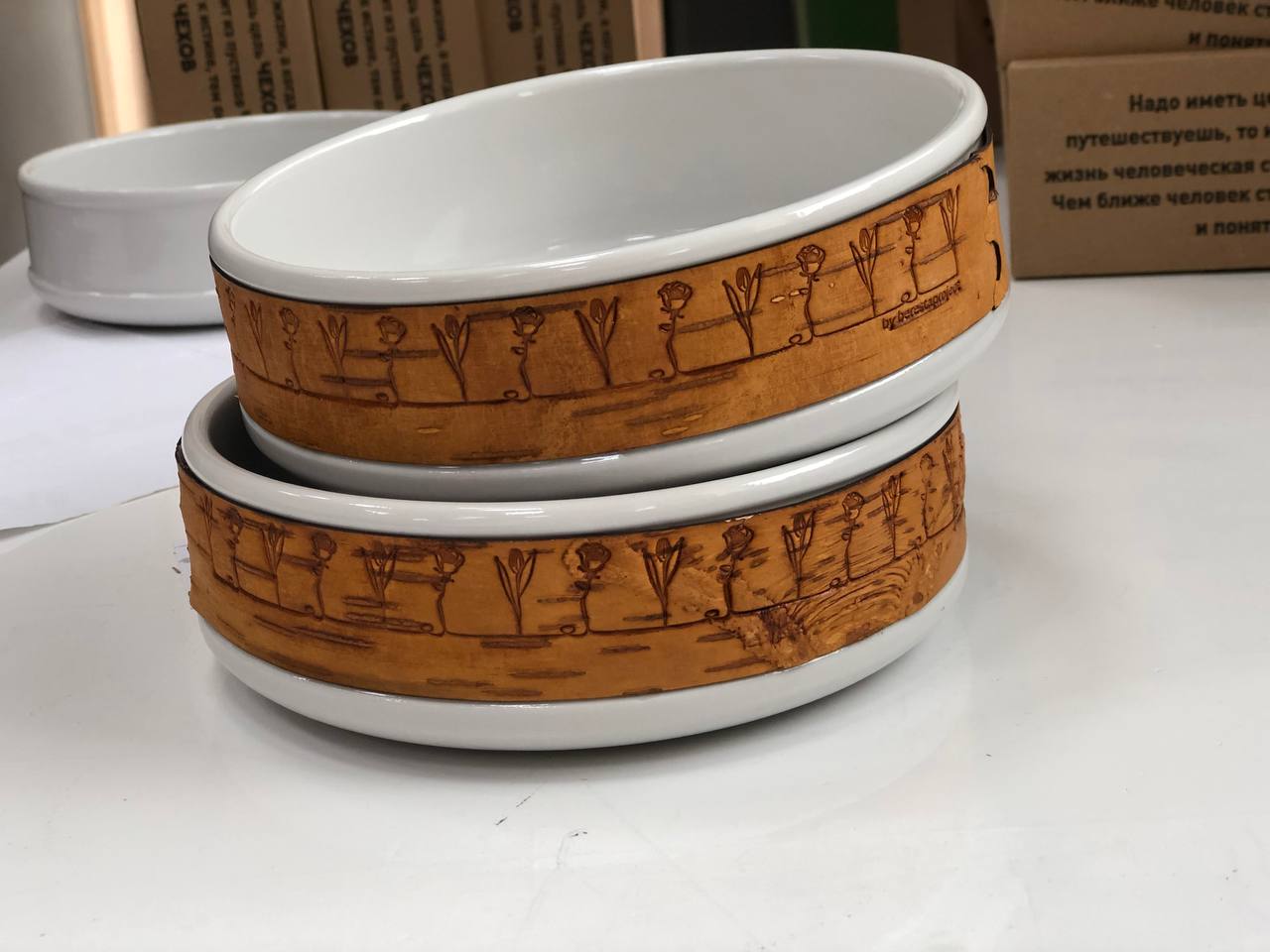 Лермонтовская коллекция была создана совместно с Государственным Лермонтовский музеем-заповедником "Тарханы", который изначально подбирал цитаты поэта для посуды. На бересту нанесены фразы на русском и английском языках. Кроме того, нами был разработан принт арабесочных ландышей, который мы посвятили Тарханам и Михаилу Юрьевичу. На лермонтовскую пиалу нанесены арабесочные ландыши.