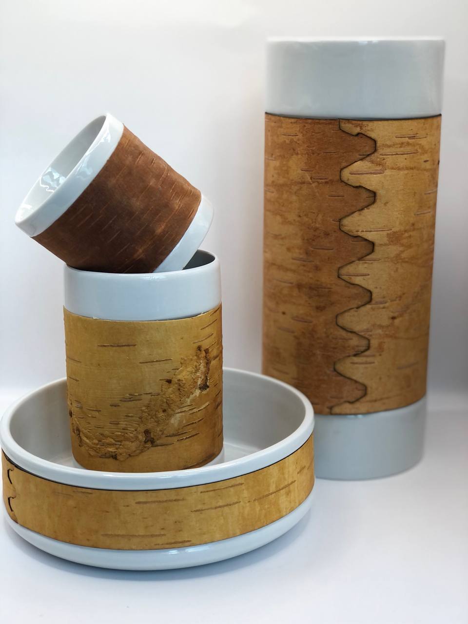 Набор из двух мисок или пиал. Из фарфора и бересты. Каждая малая миска или пиала размером 16х16х5,5, объемом 600мл и весом 600г рекомендована для завтраков с мюсли или творогом, супов и иной еды. Ее можно держать горячей в руках, не боясь обжечься; мыть в воде, не снимая бересту и ставить в посудомоечную машину или микроволновку. Пиала упаковывается в картонную коробку.
