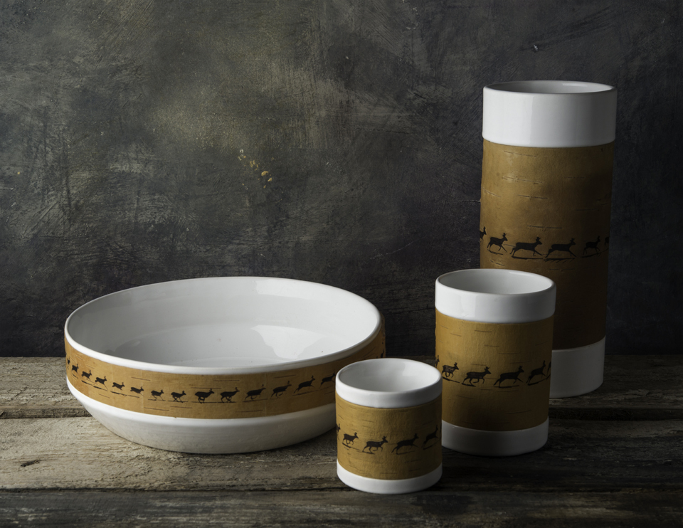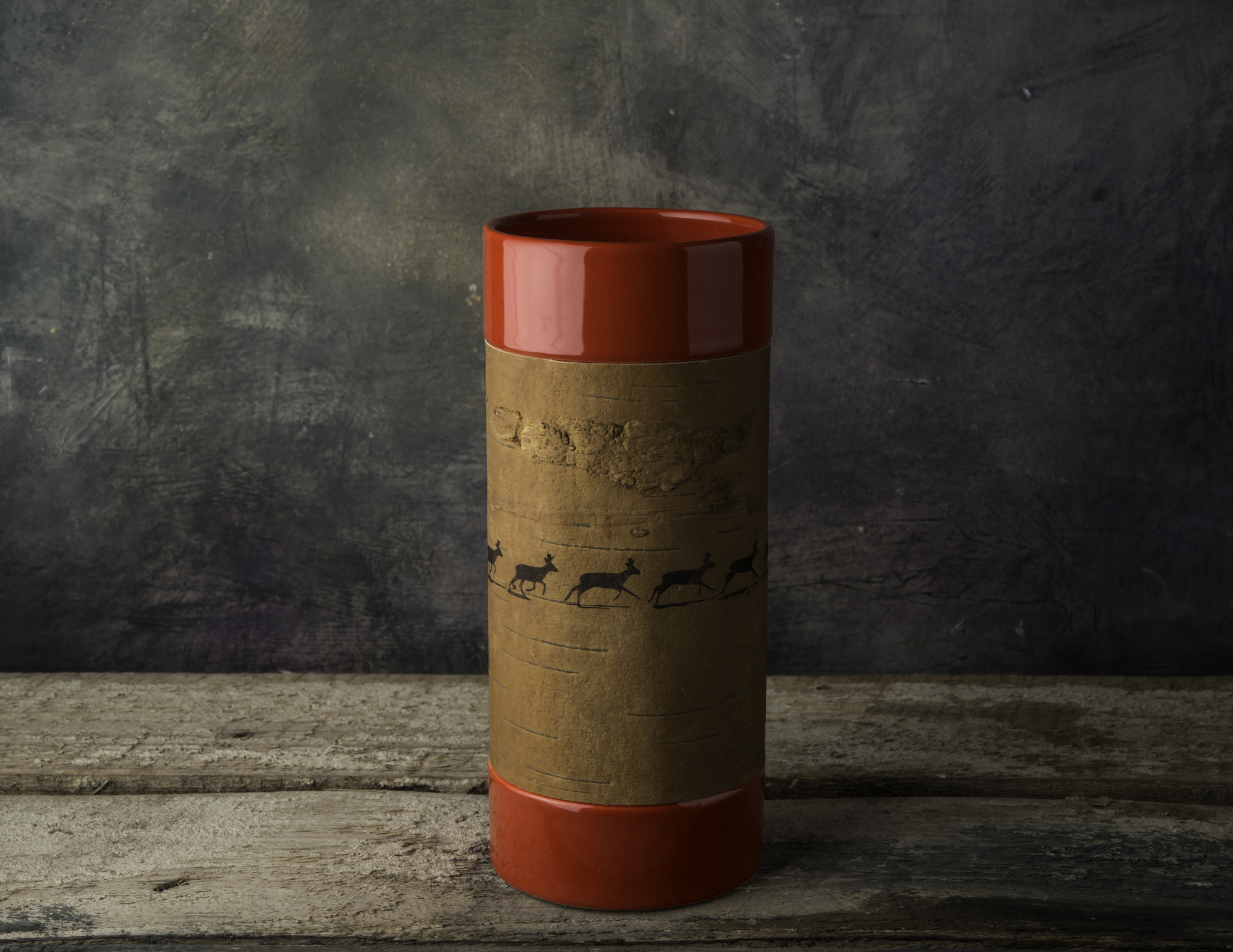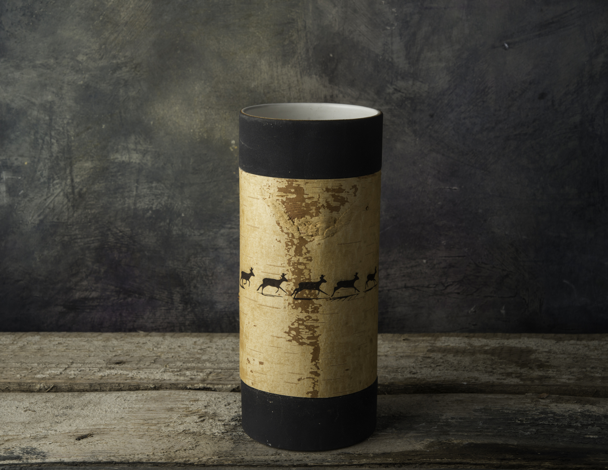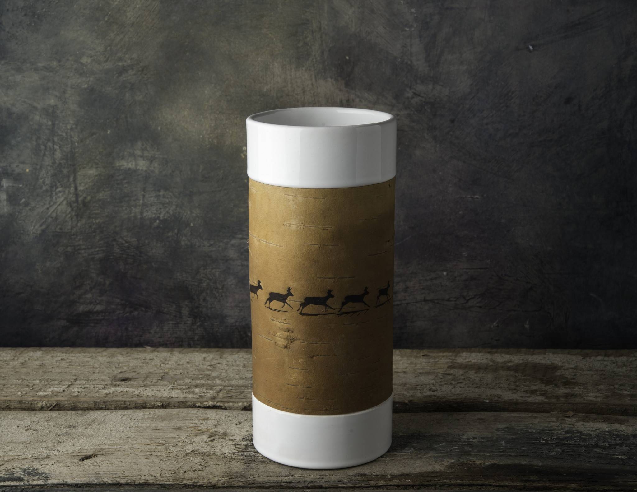 Ваза большая фарфоровая с берестой. Коллекция Олени или Рождественская